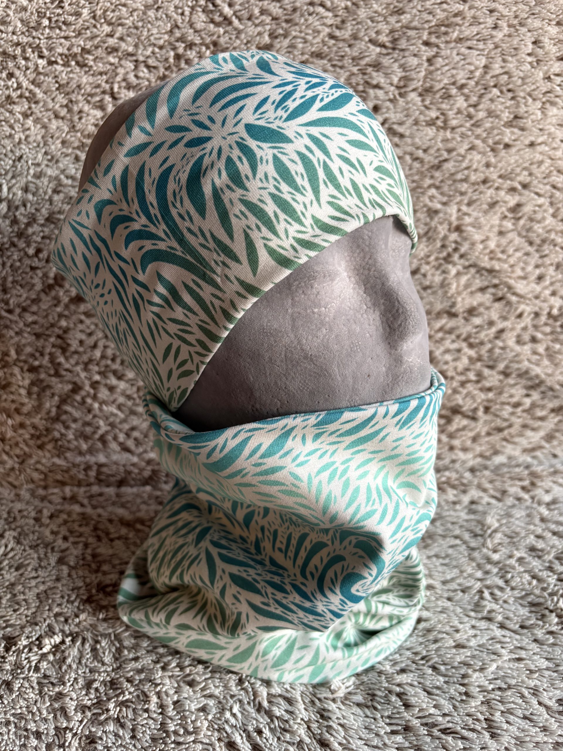 Tour de cou tissu floral turquoise blanc